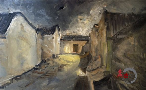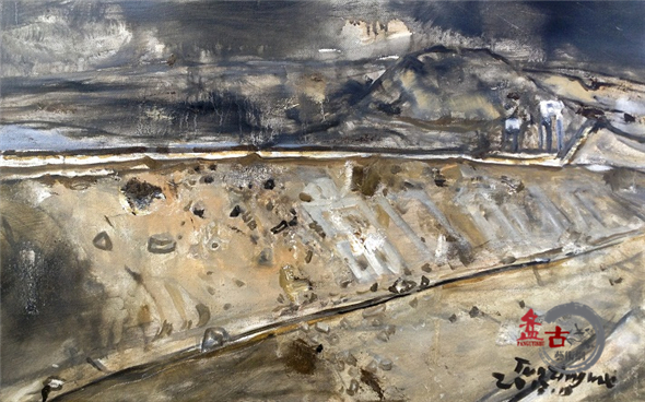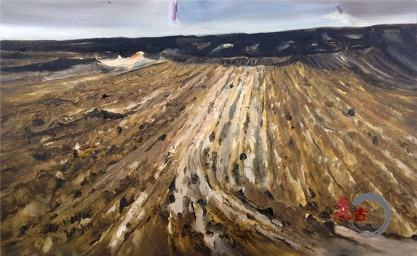脱忠伟的晋北写生,让我们看到了艺术表现的内在力量。看到了深沉思考的艺术维度。那厚重的笔墨,低沉的吟诵,时而舒缓,时而滞涩的油画语言,传达出一种无意识纠结中的舒缓和紧张,传达出一种面对大地的悠远思考和深沉挚爱,传达出一种属于一个真正艺术家的艺术精神。对于画家脱忠伟来说,他的晋北写生,恰如在夜行般的矿井中搜寻到远古的时间晶体-----闪着幽光的宝石!